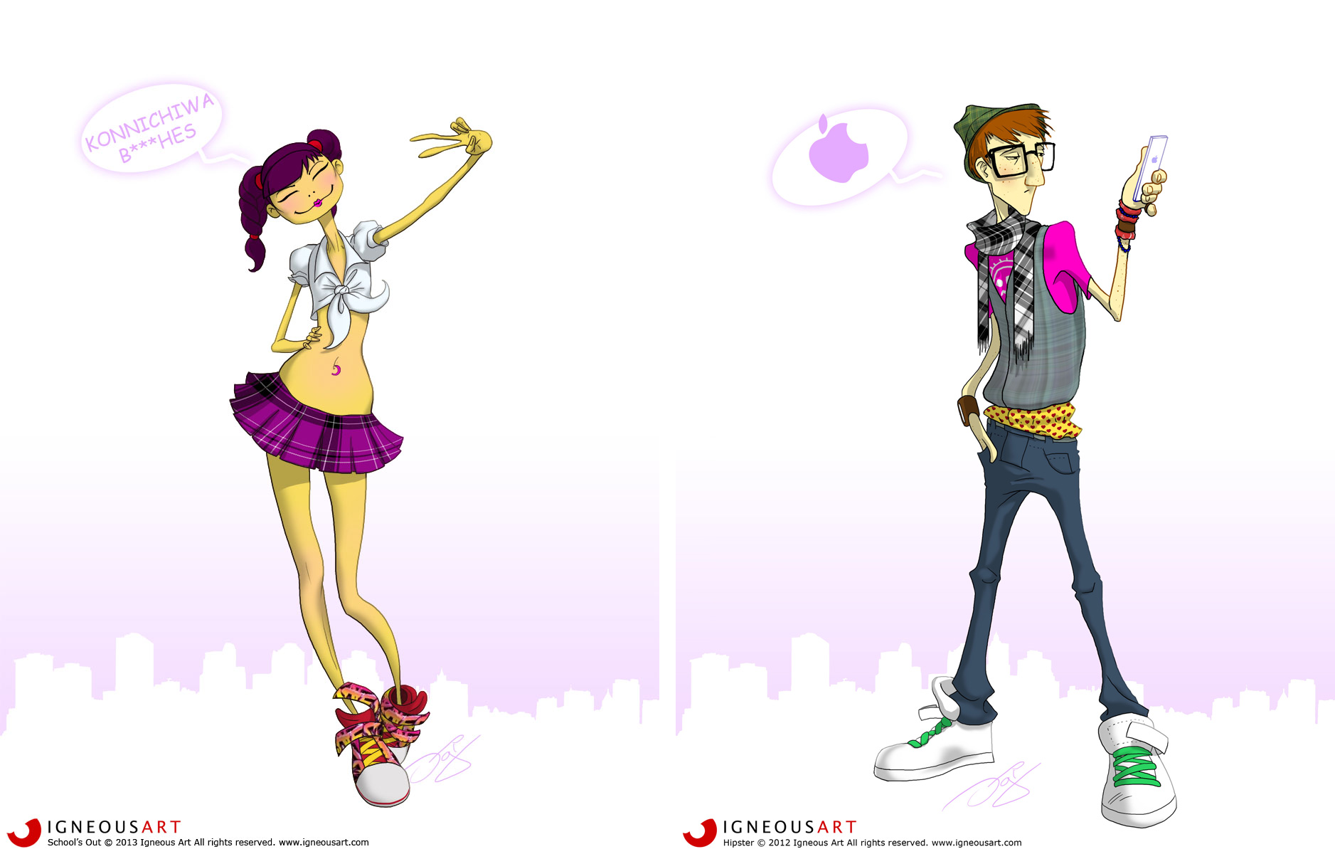 Character concepts for the internal project showcasing a diverse range of fashion styles and personalities, all illustrated in a cartoony cell-shaded style.